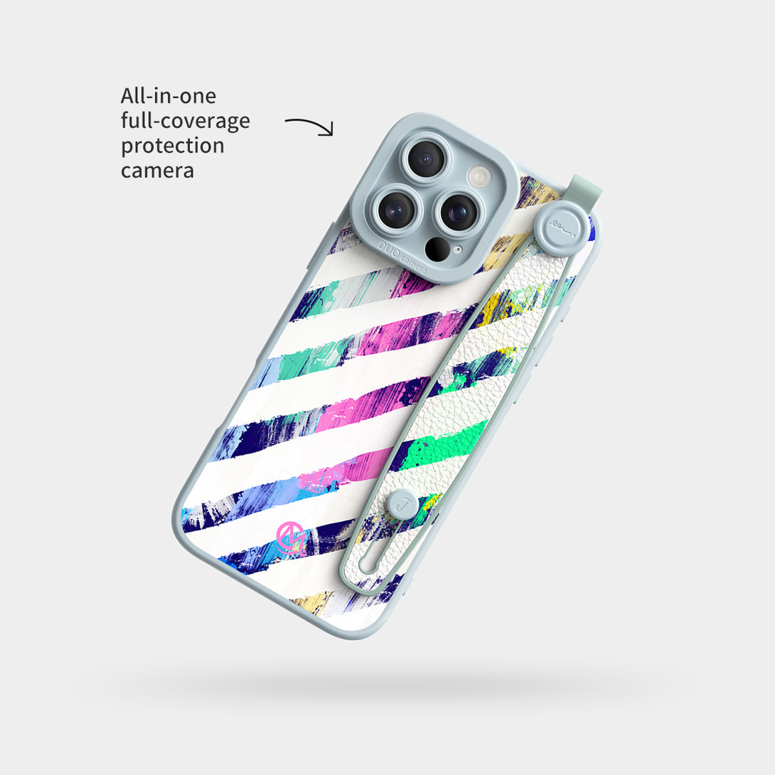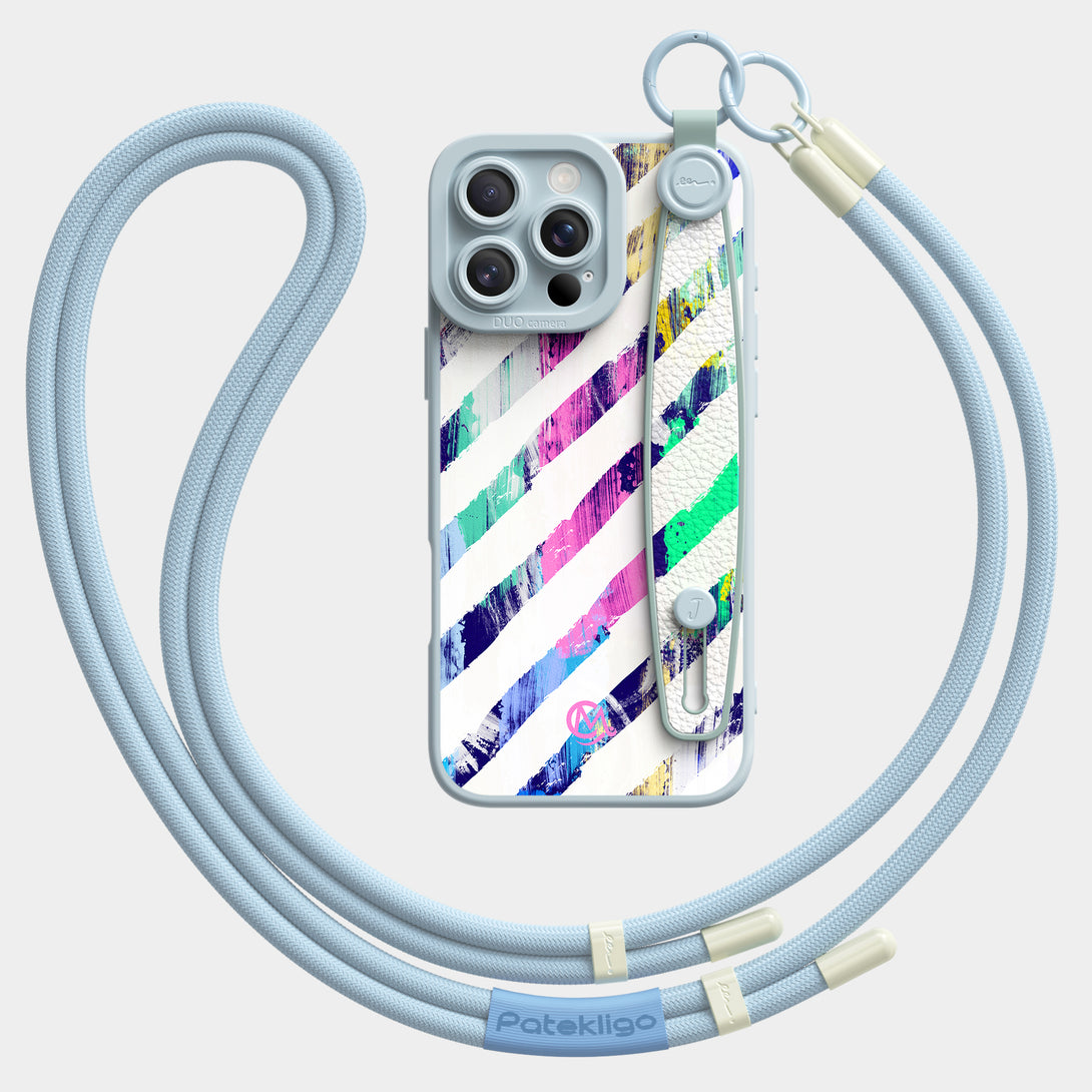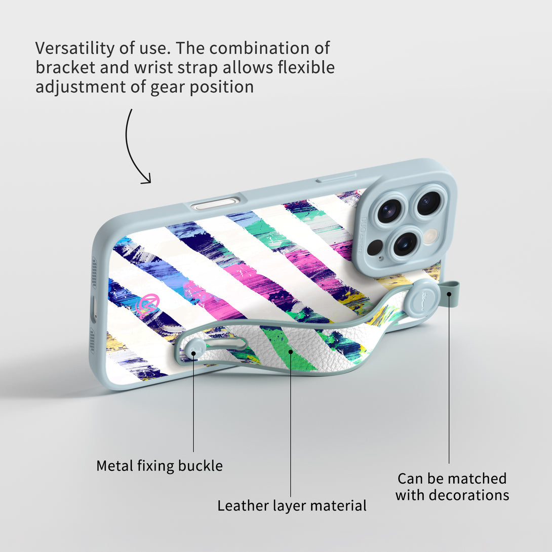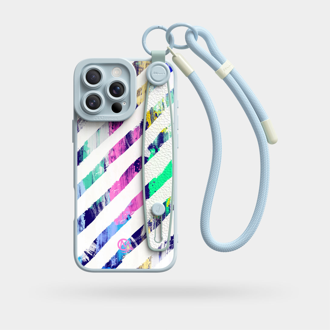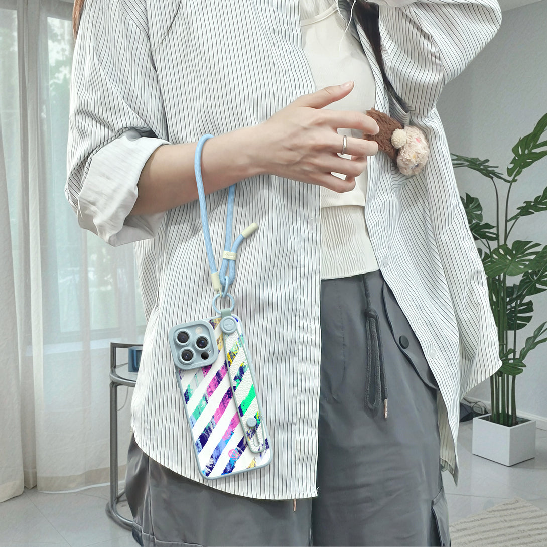 Color Stripes - Wrist Strap Liquid Silicone iPhone Case (Optional MagSafe Compatible or Standard).