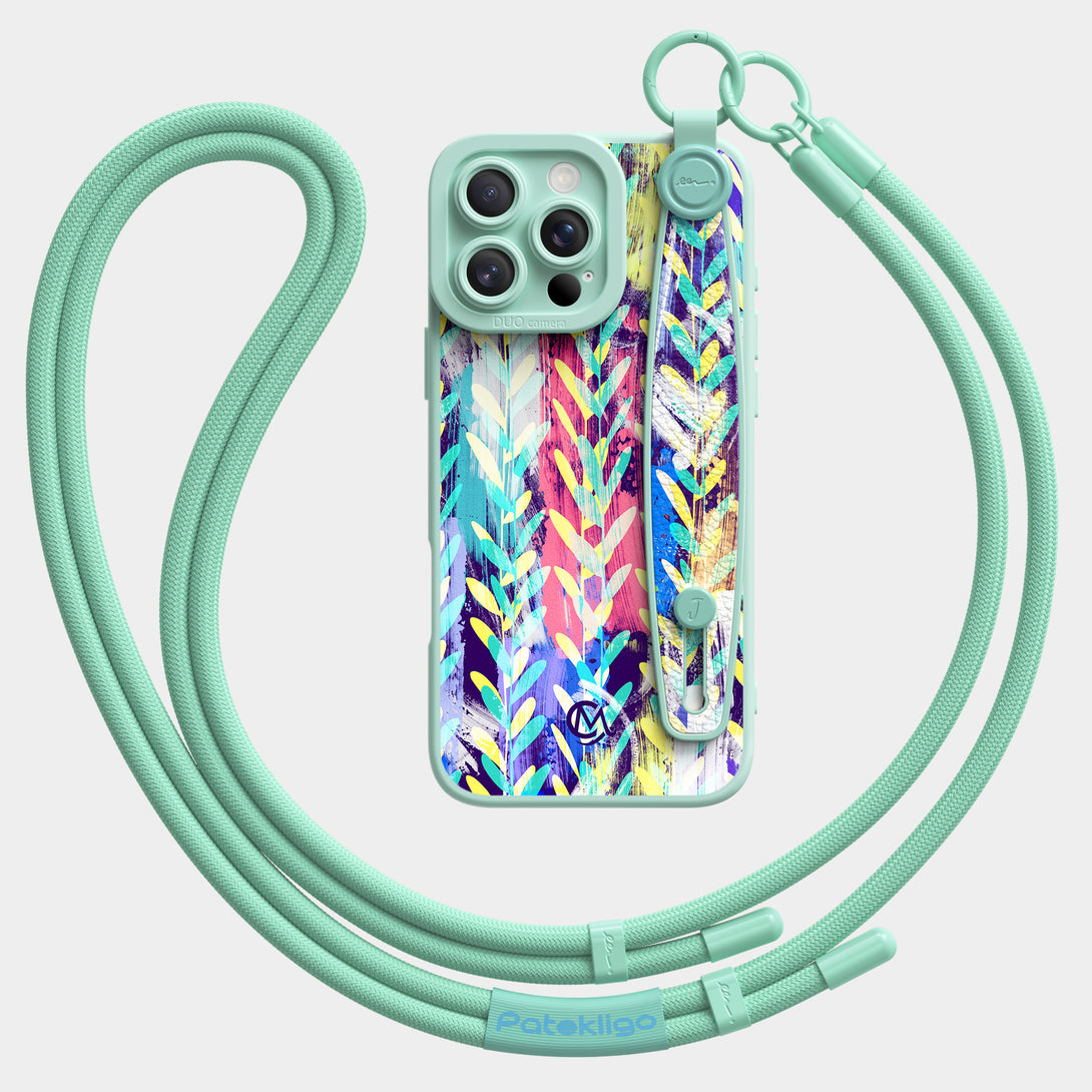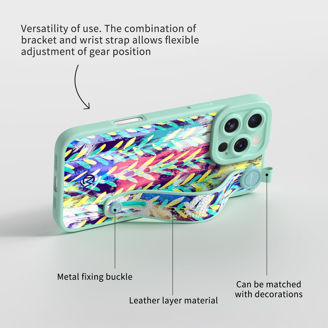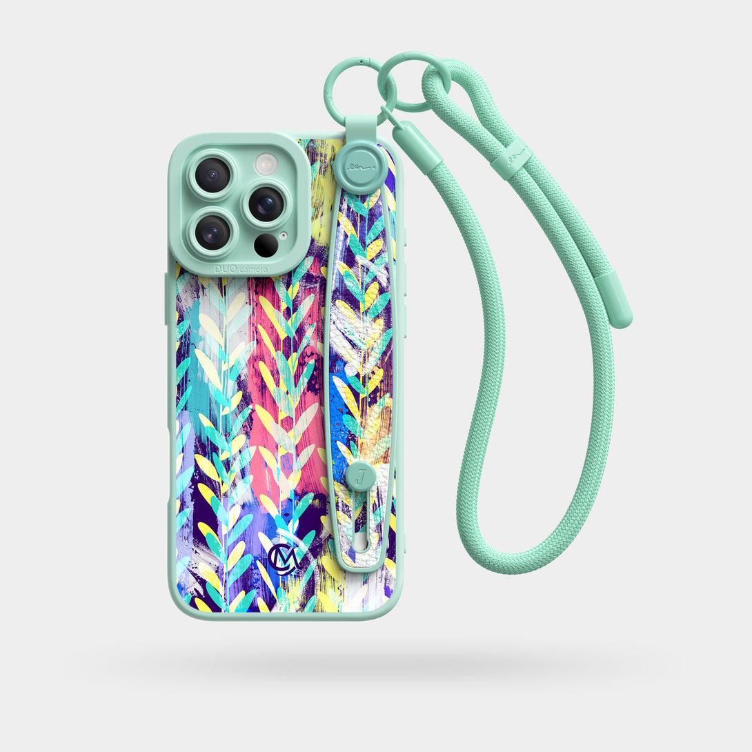 Colored Branches - Wrist Strap Liquid Silicone iPhone Case (Optional MagSafe Compatible or Standard).