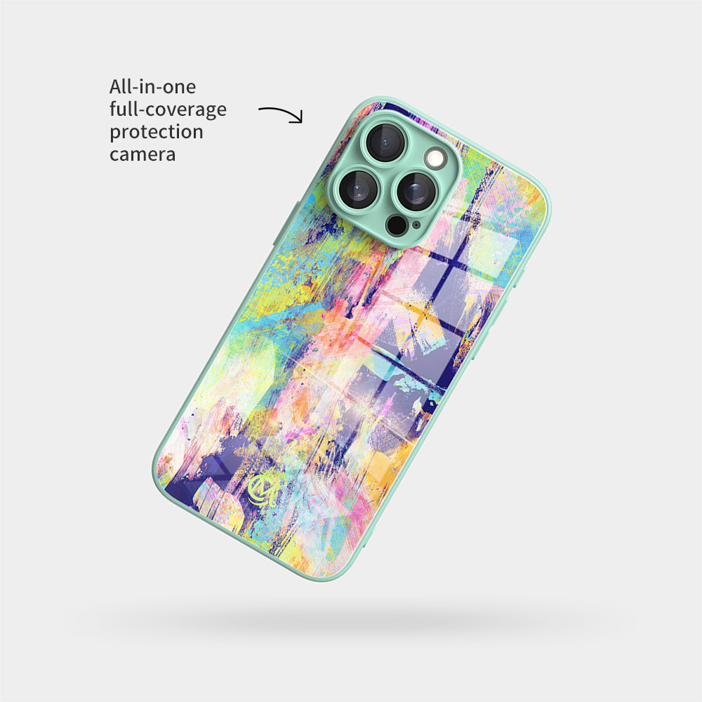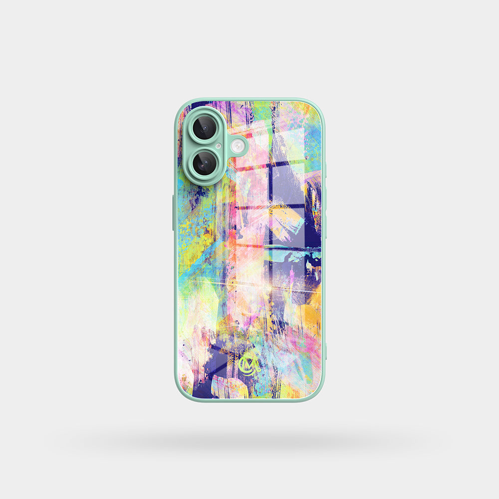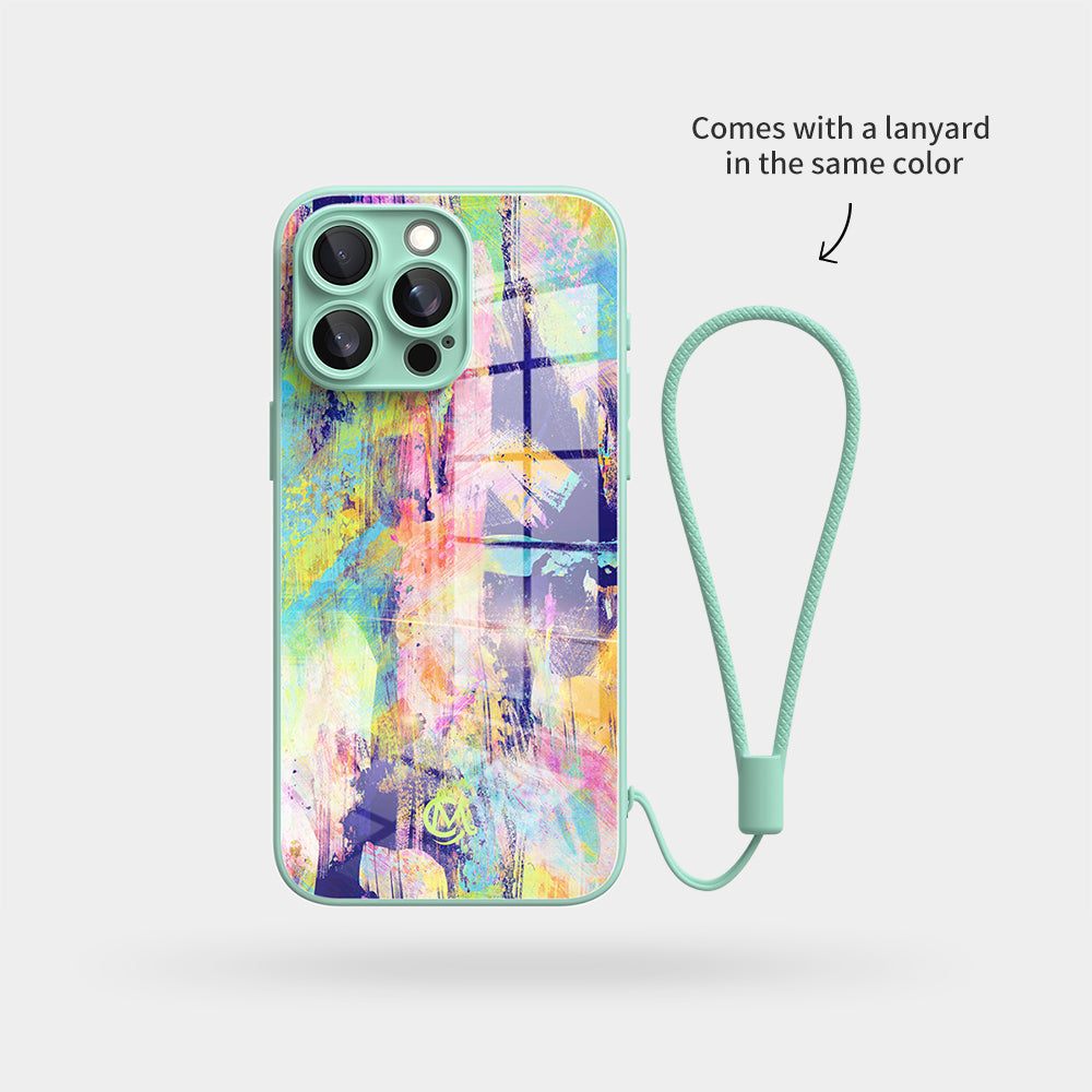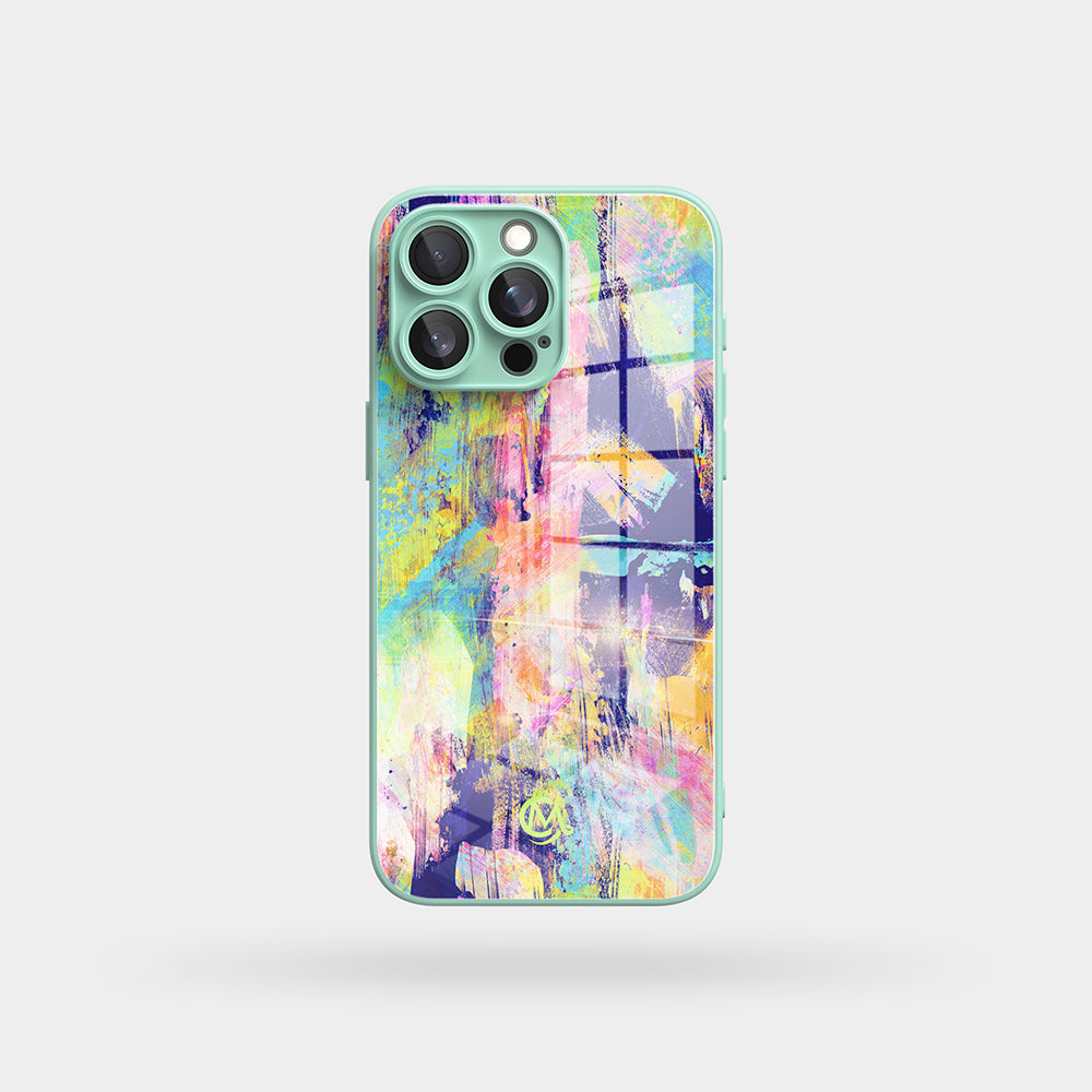 Colorful Art - Macaron Tempered Glass iPhone Case (Optional MagSafe Compatible or Standard).
