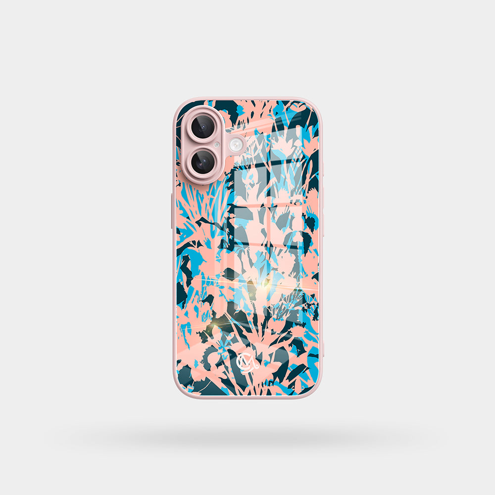 Colorful Floral - Blooming Back Garden | Macaron Tempered Glass iPhone Case (Optional MagSafe Compatible or Standard).