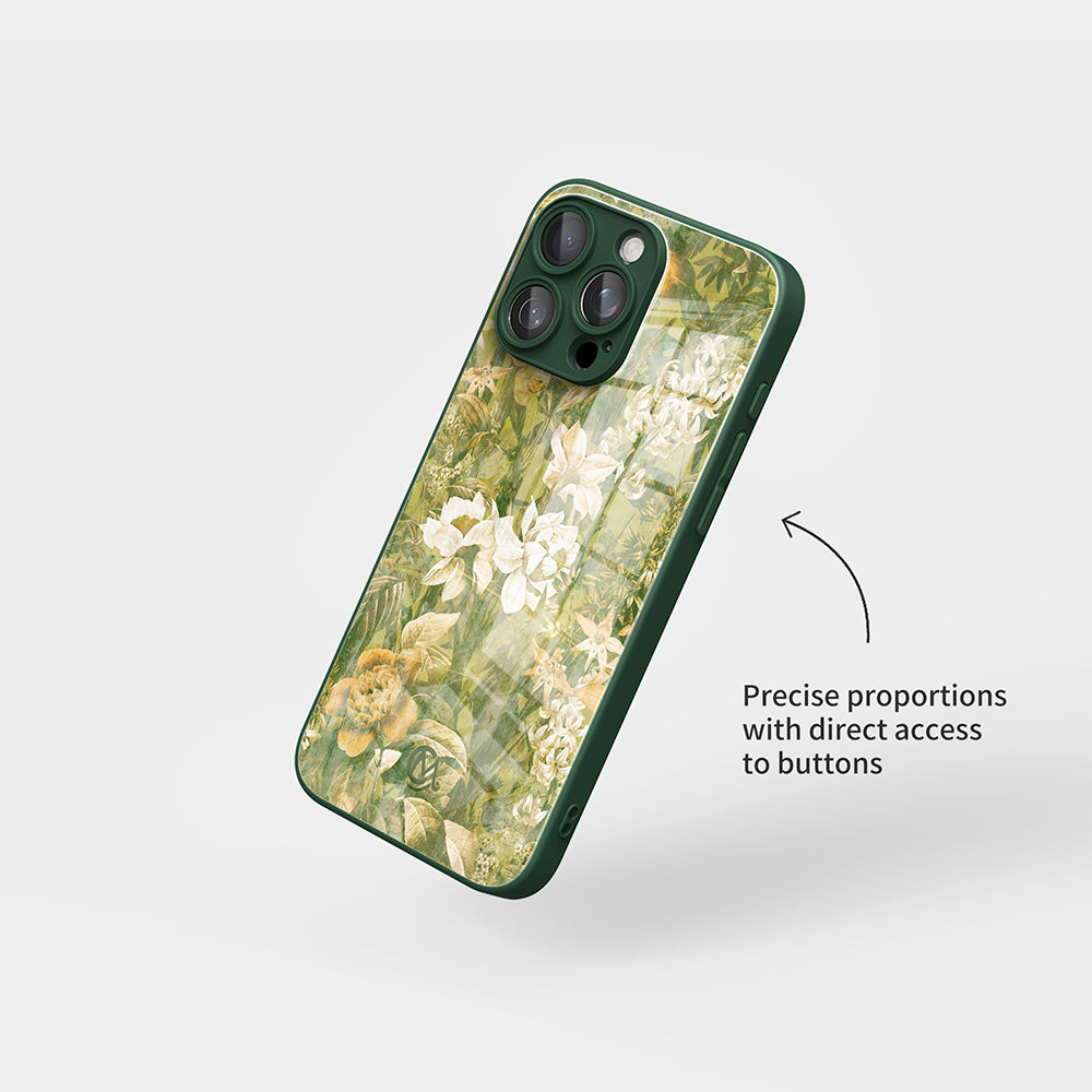 Ginger Flowers - Blooming Back Garden | Macaron Tempered Glass iPhone Case (Optional MagSafe Compatible or Standard).