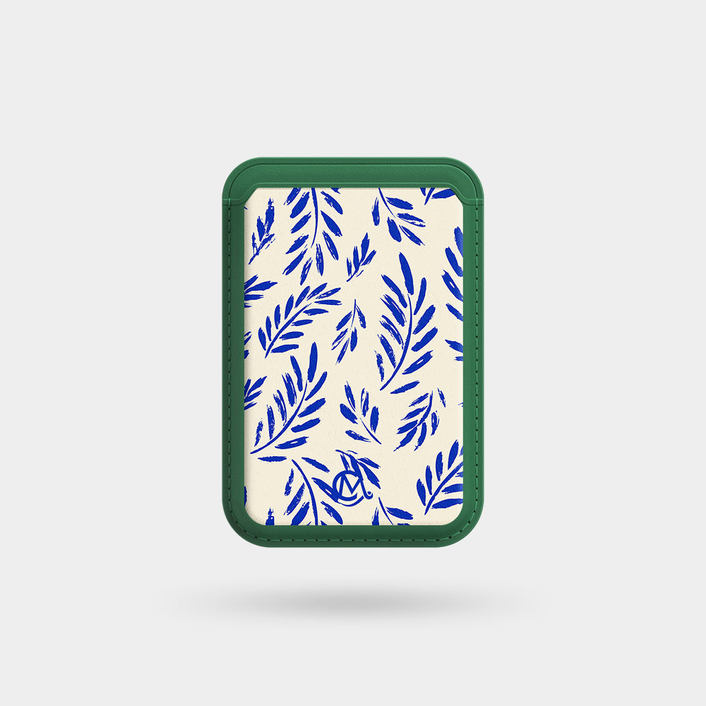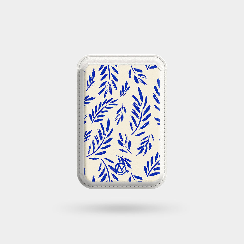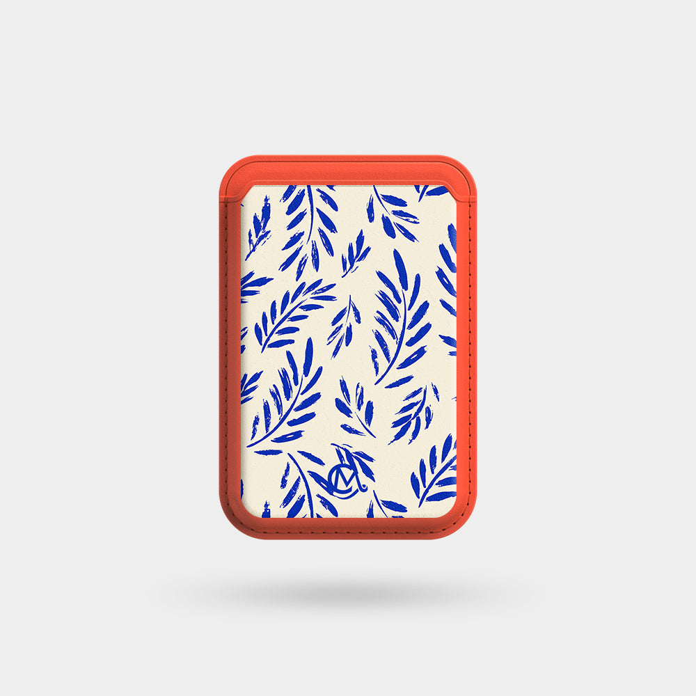 Hand Painted Blue Twigs- Leather Wallet MagSafe Compatible