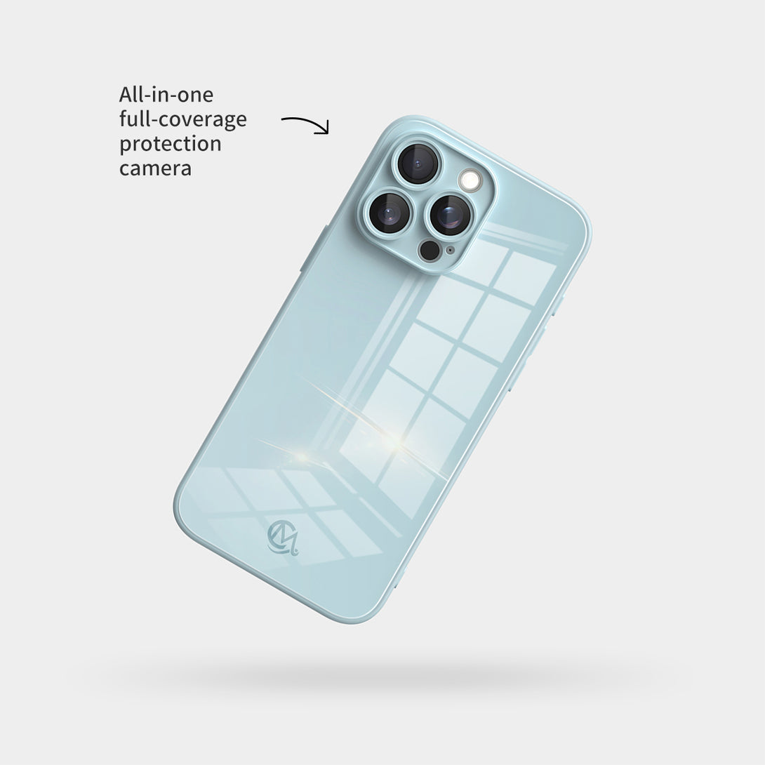Macaron (Light Blue) Tempered Glass iPhone Case (Optional MagSafe Compatible or Standard).