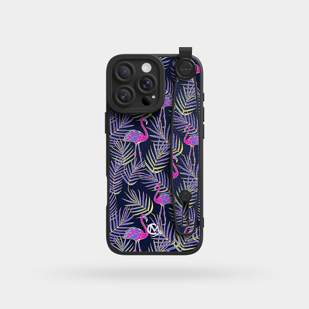 Pink Flamingos - Wrist Strap Liquid Silicone iPhone Case (Optional MagSafe Compatible or Standard).