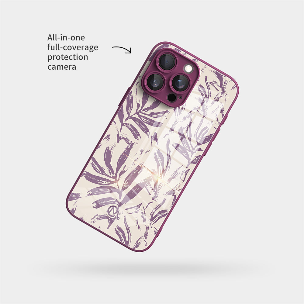 Subtle Palm - Macaron Tempered Glass iPhone Case (Optional MagSafe Compatible or Standard).